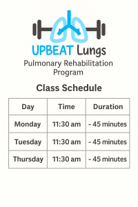 The Upbeat Lungs program helps people living with chronic respiratory conditions improve their breathing, physical function, and confidence through a combination of tailored exercise, education, and support.